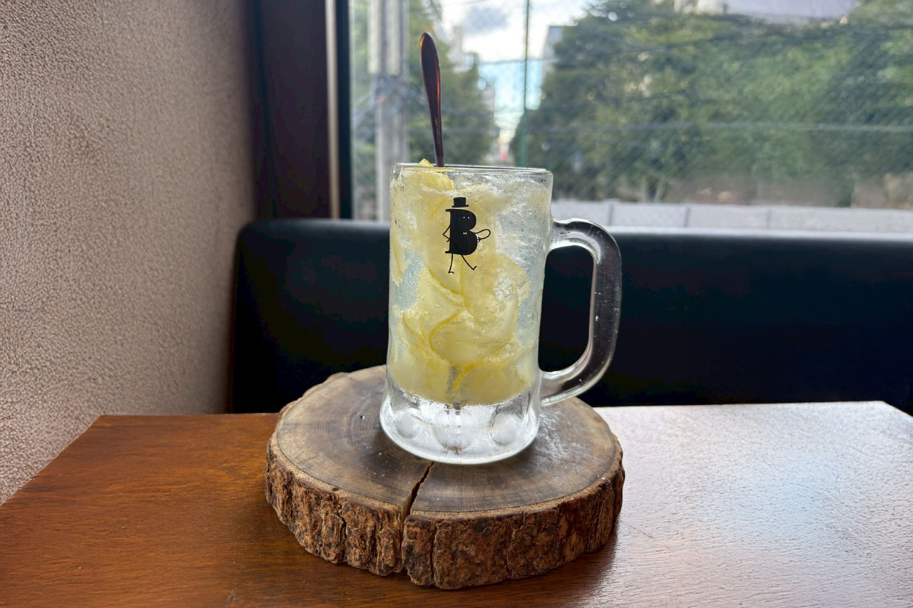 レモンの果肉たっぷり、自家製のシロップを使用したレモンサワーです。